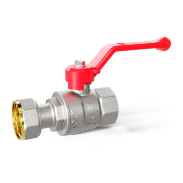 Кран шаровой латунный с накидной гайкой LD Pride 47.15.В-НкГк.Р Ду 15 Ру 40 рычаг (red)